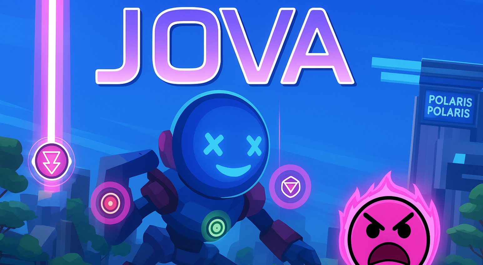 Geometry Dash Jova is the Java version of the classic rhythm platformer Geometry Dash. The player controls a small cube that automatically glides through a two-dimensional scrolling level filled with holes, spikes, and traps.