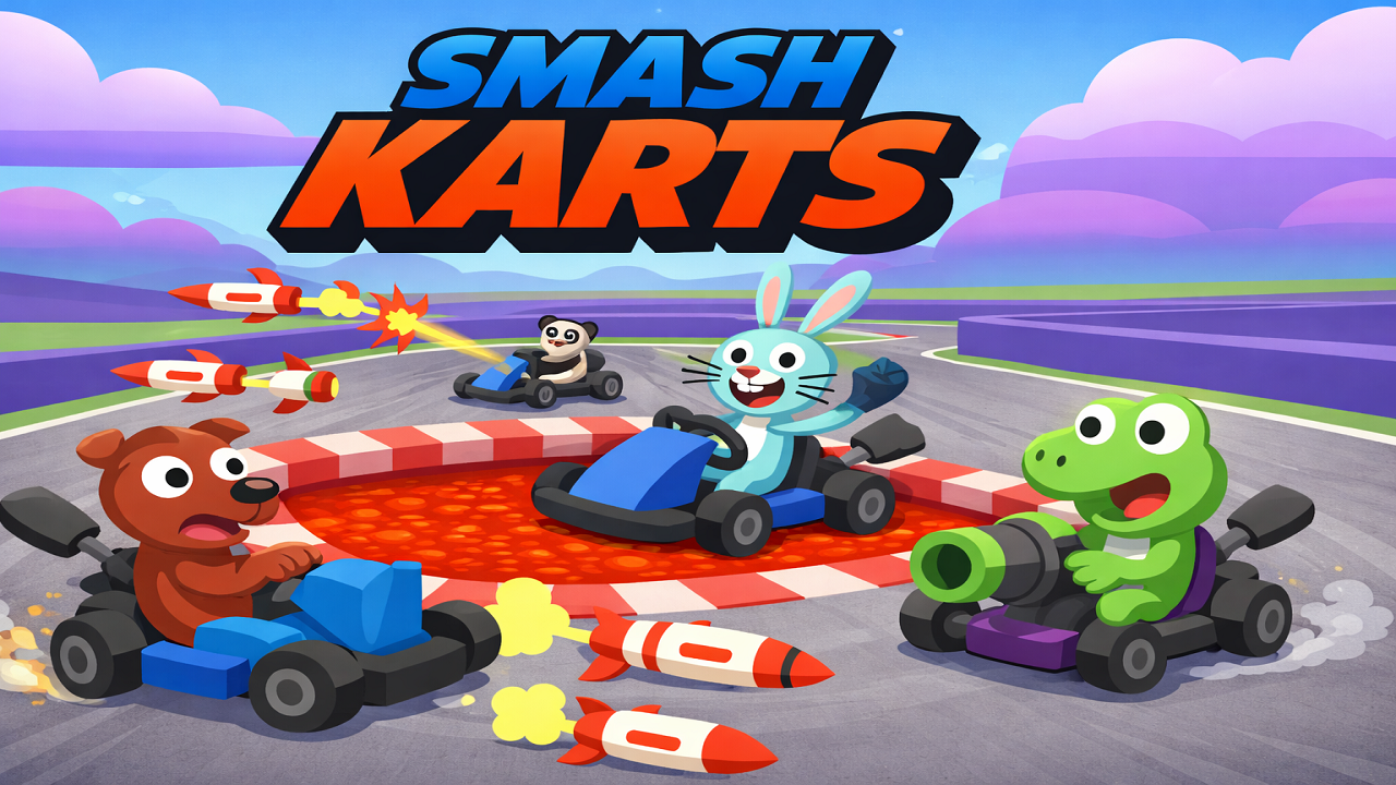 Smash Karts is an action-packed multiplayer 3D kart racing game that combines high-speed racing with explosive battles. Instead of simply crossing the finish line, players compete in chaotic arenas where the goal is to survive and eliminate opponents using a variety of weapons.